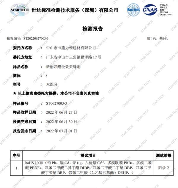 磚麗、大獅、德蘭麗格品牌的所有美縫劑產(chǎn)品全部通過(guò)RoHS10項(xiàng)指標(biāo),不含重金屬!